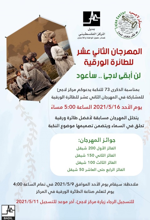 وقد تعددت الأنشطة والبرامج التي نظمها بديل والمؤسسات الشريكة ضمن إطار الشبكة العالمية للدفاع عن حقوق اللاجئين والمهجرين الفلسطينيين، حيث نظم مركز شباب عايدة الاجتماعي وقفة احتجاجية أمام مفتاح العودة في مخيم عايدة اسناداً للفلسطينيين في حي الشيخ جراح وسلوان، تلاها مسيرة للمشاعل في مدينة بيت لحم. وعمل مركز لاجئ – مخيم عايدة أيضاً على تنظيم مهرجان الطائرات الورقية ومسابقة فنية للأطفال، والذي تضمن رسم جداريات وكتابة رسائل لأطفال الشيخ جراح، سلوان، وغزة. هدفت الفعاليات إلى تعريف الأطفال بالنكبة الفلسطينية والتهجير القسري المستمر.