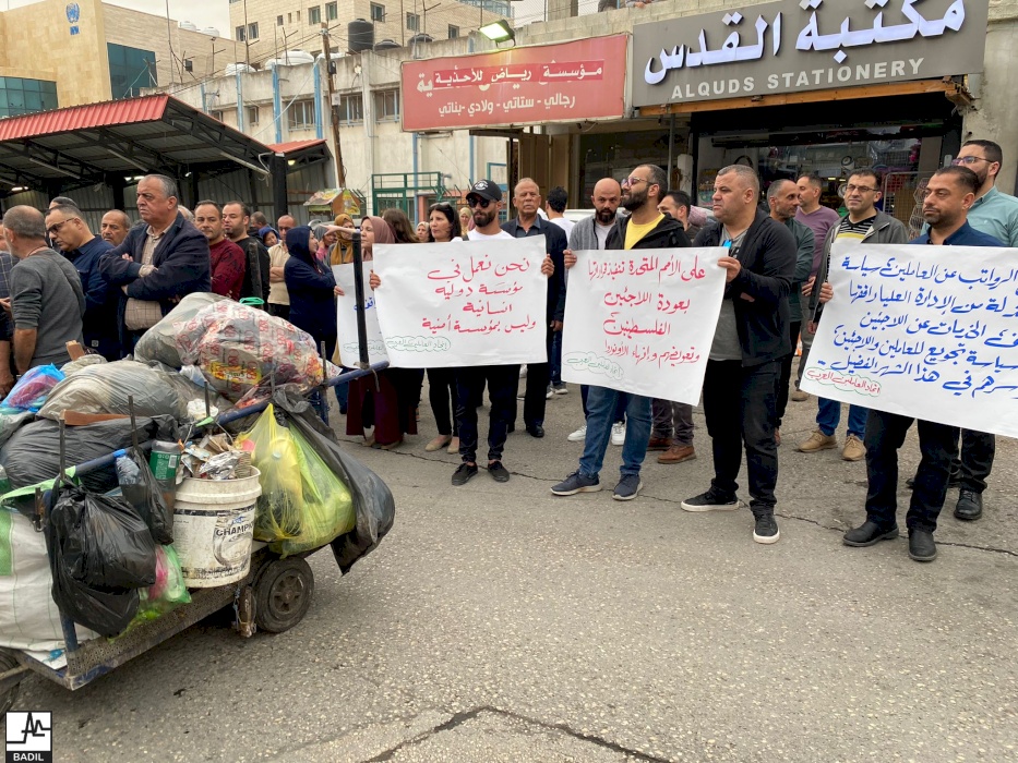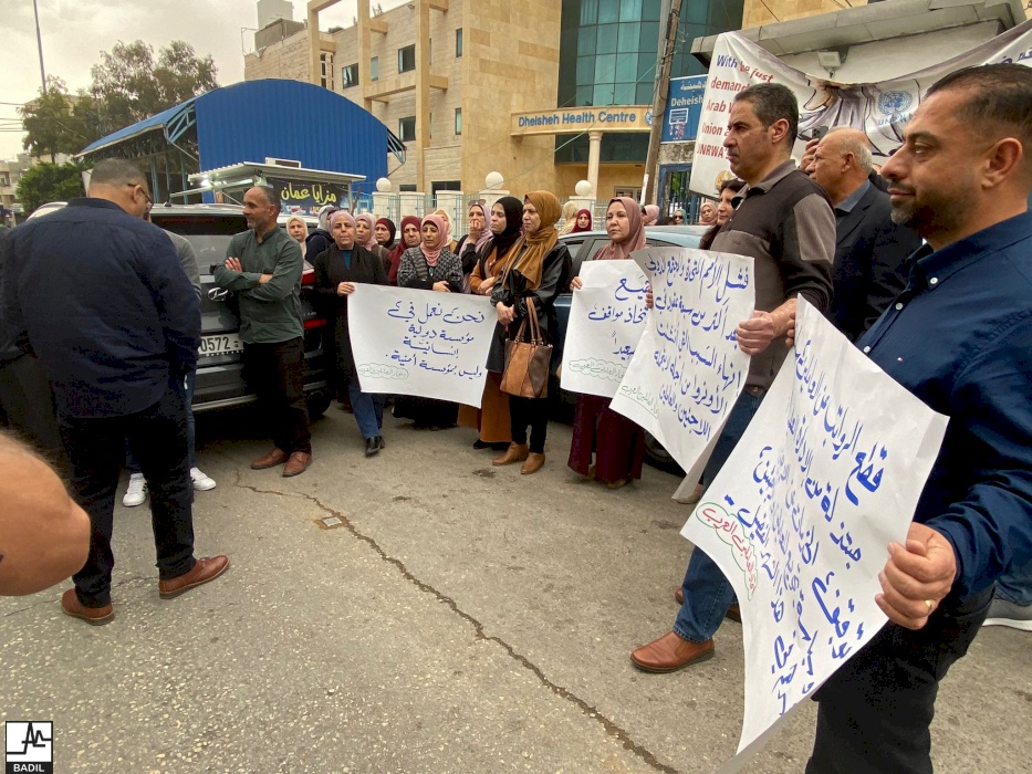 وخلال الوقفة الاحتجاجية التي نظمها اتحاد العاملين العرب أمام مقرات الأونروا في مخيم الدهيشة، طالب أعضاء الاتحاد الجهات المسؤولة، وعلى رأسها إدارة الأونروا، الالتزام بمسؤولياتها وتحقيق مطالبهم المحقة، ووقف نقل مهامهم الصحية والتعليمية في المخيمات الى جهات وأجسام أخرى. إن نقل وظائف الأونروا الى غير العاملين فيها يساهم في كسر إضراب الاتحاد من جهة، ويصب في مصلحة مشروع تصفية الأونروا من جهة أخرى.