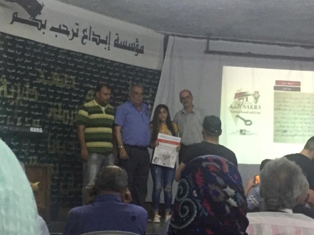 نظّم بديل/ المركز الفلسطيني لمصادر حقوق المواطنة واللاجئين بالتعاون مع مؤسسة إبداع، يوم الأحد الموافق 2 حزيران 2019، حفل تكريم للفائزين في كل من المسابقة الثقافية والرياضية اللتان اقيمتا ضمن فعاليات مواجهة النكبة المستمرة.