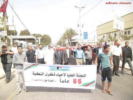 وتمّ عقد ندوة حول تاريخ فلسطين والصراع بتاريخ 12أيّار 2014 في مبنى بلدية خان يونس بحضور عدد من الفعاليات الوطنية، حيث تم تقديم سرد تاريخي لحياة الفلسطينيين ما قبل النكبة - تحت الانتداب البريطاني- وبتقديم عرض تاريخي لظروف النكبة ومعاناة الشعب الفلسطيني في ظل استمرار حياة اللجوء. في ختام الفعاليات، قامت اللجنة العليا لإحياء ذكرى النكبة الـ66بتنظيم مهرجان حاشد.