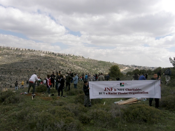 وقد انطلقت المسيرة التي شارك فيها حشد من الاطفال والنساء والشباب والطلاب من محافظة بيت لحم باتجاه الاراضي المهددة بالمصادرة في منطقة دير كريمزان تحت شعار: أوقفوا الصندوق القومي اليهودي... أزيلوا القناع الأخضر عن نظامالأبارتهايد الإسرائيلي، ورفعت فيها شعارات تطالب بالحفاظ على الأراضي المهددة بالمصادرة والتصدي للهجمة الشرسة التي تتعرض لها تحت ذريعة بناء جدار الفصل العنصري وبناء وتوسيع المستوطنات اليهودية، وطالبت الشعارات بالتمسك بالأرض كونها جوهر الصراع مع إسرائيل. كما هتف المشاركون في المسيرة ضد نظام الفصل العنصري والتجزئة الذي تفرضه اسرائيل على الشعب الفلسطيني، ونددوا بالحملة الشرسة التي يقودها قطعان المستوطنين في الضفة الغربية المحتلة، وطالبوا بفضح ممارسات الصندوق القومي اليهودي او ما يعرف ب "الكيرن كيمت"، والذي يستخدم كاداة لمصادرة املاك اللاجئين والمهجرين الفلسطينيين في الاراضي المحتلة عام 1948 تحت ذريعة تشجيرها، وفي الاونة الاخيرة بدأ هذا الصندوق بعمل انشطة تشجيرية وزراعة اشجار سرو في الارض المحتلة عام 1967، ومنها منطقة الولجة ودير كريمزان في محافظة بيت لحم. وقد تخلل المسيرة ايضاً هتافات تنادي بالوحدة الفلسطينية والحفاظ على ثوابت الشعب الفلسطيني وعلى رأسها حق عودة اللاجئين والمهجرين الى اراضيهم ومنازلهم التي هجروا منها في العام 1948.