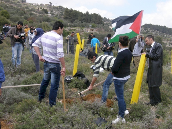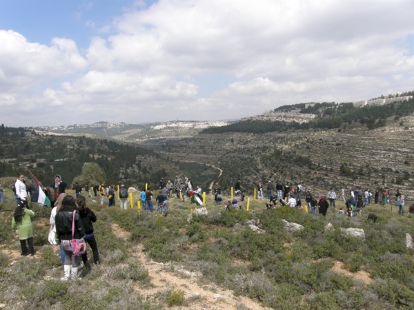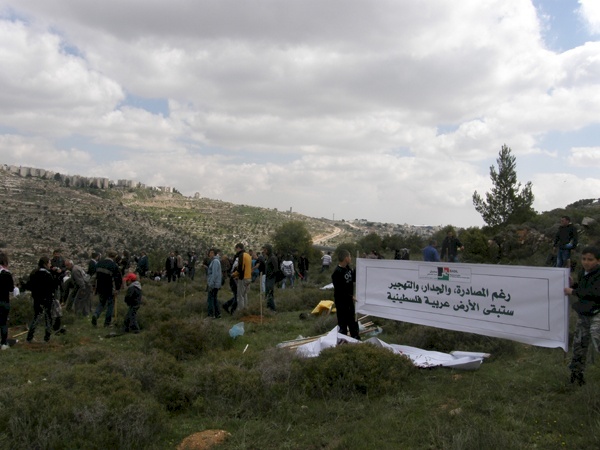 بيت لحم،مركز بديل، 30 اذار 201. أحياءً لذكرى يوم الأرض وتعبيرا عن التمسك بالأرض والدفاع عن الكرامة الإنسانية، قام بديل/المركز الفلسطيني لمصادر حقوق المواطنة واللاجئين، اليوم الجمعة الموافق 30 اذار 2012 وبالشراكة مع عدد من مؤسسات المجتمع المدني في محافظة بيت لحم، بتنظيم مسيرة جماهيرية تخللها زراعة أشجار زيتون في الأراضي المهددة بالمصادرة في منطقتي دير كريمزان والولجة المحاذية للقدس.