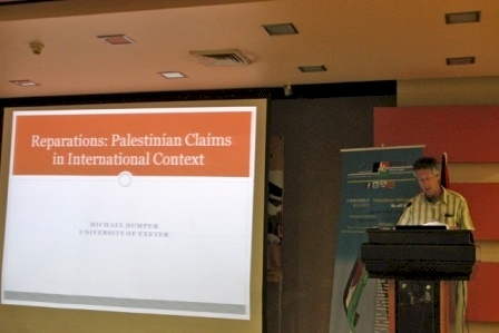 The conference was organized into four sessions with interventions from internationally renowned experts in various fields, Palestinian human rights organizations, and international organizations. Prof. Joseph Schechla of the Habitat International Coalition probed “Forced Population Transfer in International Law” (Session I). BADIL Resource Center, Adalah-The Legal Center for Arab Minority Rights in Israel, and the Palestinian Authority represented by the Wall and Colonization Portfolio presented strategies and practices of “Local Intervention” (Session II). The Norwegian Refugee Council (NRC), the United Nations Relief Works Agency (UNRWA), the Office of the United Nations the High Commissioner for Human Rights (OHCHR) and the Office of the Coordination of Humanitarian Affairs (OCHA) outlined “International Interventions” (Session III). IN the fourth and last session, “Practical Approaches and Recommendations”, Prof. Michael Dumper of the University of Exeter outlined the parameters of reparations and restitution and Prof. Susan Akram of Boston University provided a summation of the conference and practical measures in moving forward with adherence to international law and the realization of the right of return for Palestinian refugees.