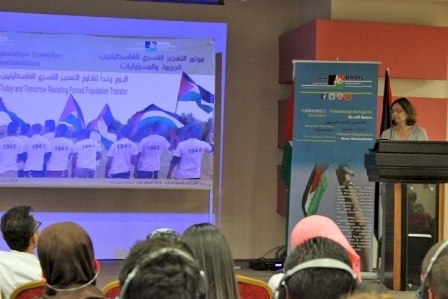 4 June 2013, Ramallah – BADIL hosted the first Palestinian conference on forced population transfer at the Red Crescent Society. The conference entitled “Forced Population Transfer-Elements and Responsibilities” was the first of its kind tackling the issue of the forced population transfer of the indigenous Palestinian population and local, national and international interventions to prevent displacement. At the conference BADIL launched “Israeli Land Grab and Forced Population Transfer of Palestinians: A Handbook for Vulnerable Individuals and Communities”, a guide to understanding the linkage between Israeli land regime and forced population transfer.