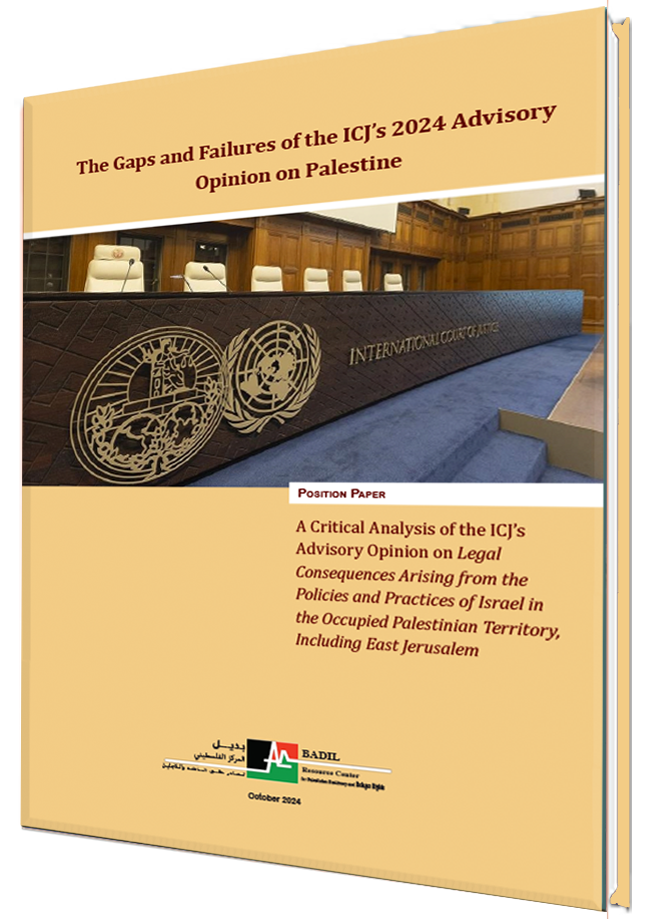 On 19 July 2024, the International Court of Justice’s (ICJ) Advisory Opinion on the Legal Consequences Arising from the Policies and Practices of Israel in the Occupied Palestinian Territory, Including East Jerusalem was issued and was hailed as a breakthrough by Palestinian and international audiences alike. While the 2024 Advisory Opinion determines Israeli policies and practices as unlawful and is stronger than the ICJ’s 2004 ruling on the Legal Consequences of the Construction of a Wall in the Occupied Palestinian Territory, the reality is that it contains gaps and flaws that significantly undermine the principles of international law and its implementation vis-à-vis the Palestinian people. As such, BADIL Resource Center presents its critical analysis of the 2024 Advisory Opinion titled, “The Gaps and Failures of the ICJ’s 2024 Advisory Opinion on Palestine.”