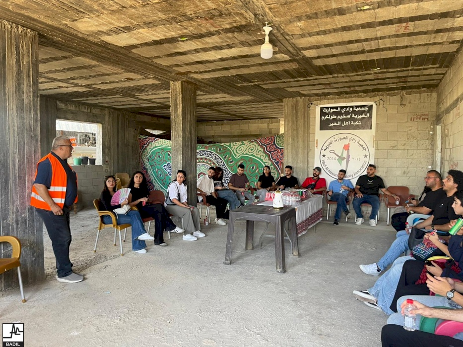 Moreover, there was a field visit to Tulkarm in partnership with Al Awda Center, during which PYF members met with a group of displaced women from Tulkarm and Nur Shams refugee camps. The PYF witnessed the destruction of the camps due to ongoing Israeli invasions and siege since January 2025. They also visited the "Roots of the Sun" cooperative in the Shuweika suburb, with the aim of coordinating joint community initiatives in the upcoming months.