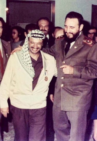 | Former PLO Chairman Yasser Arafat shares a joke with Cuban president Fidel Castro. (PPO/Getty Images) |