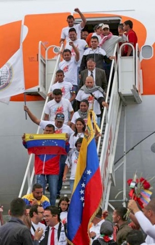 Photo: Palestinian students greeted like celebrities upon arrival in Caracas, Venezuela. November 2014 (Ariana Cubillos) |